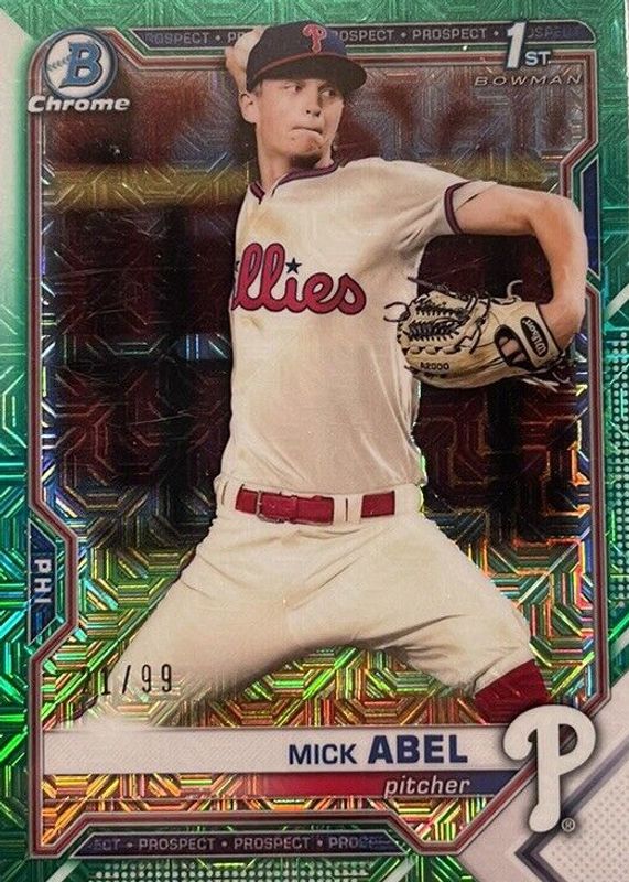 MICK ABEL 2021 BOWMAN CHROME 1ST GREEN SHIMMER REFRACTOR /99 PHILLIES