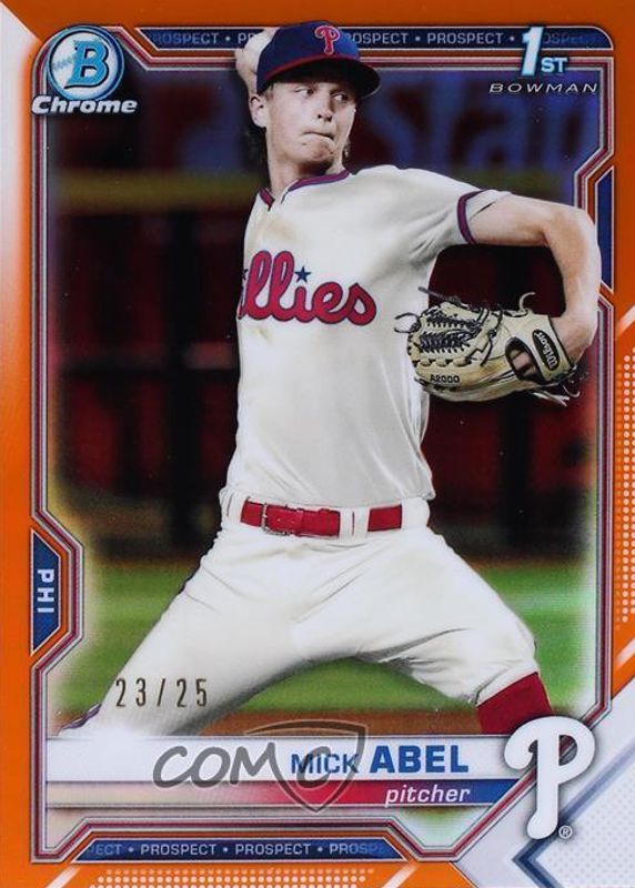 2021 Bowman Mick Abel Chrome Orange Refractor 1st #25/25 Phillies