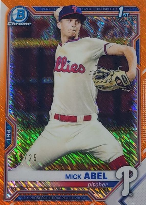 Mick Abel 2021 Bowman #BCP-42 Chrome Prospects - Orange Shimmer Refractor /25 (1st) RAW Price Guide