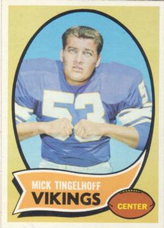 The Mick Tingelhoff 1970 Topps #158 Base card is 1 of 2 Mick Tingelhoff's card variations in the 1970 Topps set being tracked by Sports Card Investor, including Posters.