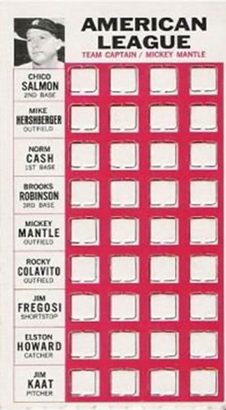 Other popular players in the 1967 Topps Punch-Outs set include Al Kaline, Andy Etchebarren, Bill Freehan, Bill Mazeroski, and Bill White.