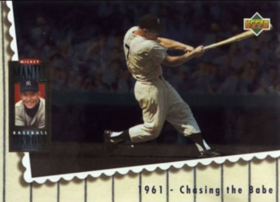 The Mickey Mantle 1994 Upper Deck #68 Baseball Heroes: Mickey Mantle card is 1 of 12 Mickey Mantle's card variations in the 1994 Upper Deck set being tracked by Sports Card Investor, including #72 Baseball Heroes: Mickey Mantle, #64 Baseball Heroes: Mickey Mantle, #65 Baseball Heroes: Mickey Mantle, #66 Baseball Heroes: Mickey Mantle, and #67 Baseball Heroes: Mickey Mantle.