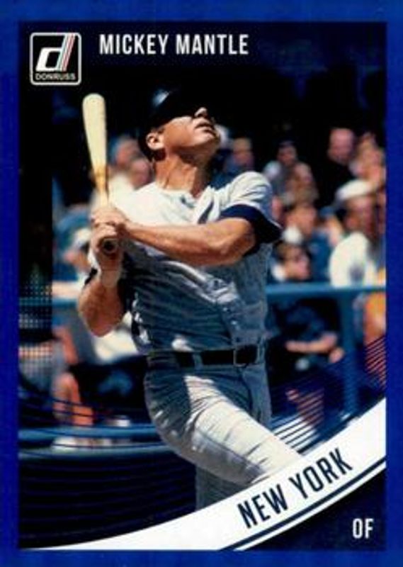 The Mickey Mantle 2018 Donruss #200 Holo Blue card is 1 of 36 Mickey Mantle's card variations in the 2018 Donruss set being tracked by Sports Card Investor, including #254b Base, #200 Base, #254 Base, Blank Back, and #200 Holo Green.