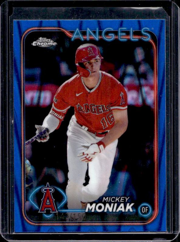 The Mickey Moniak 2024 Topps Chrome #51 Blue RayWave Refractor /150 card is 1 of 13 Mickey Moniak's card variations in the 2024 Topps Chrome set being tracked by Sports Card Investor, including Base, Pink Refractor, Aqua RayWave Refractor /199, Blue Refractor /150, and Blue Sonar Refractor /125.