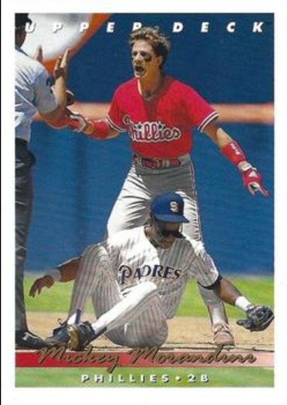 The Mickey Morandini 1993 Upper Deck #285 Gold Hologram card is 1 of 3 Mickey Morandini's card variations in the 1993 Upper Deck set being tracked by Sports Card Investor, including Base, and Season Highlights.
