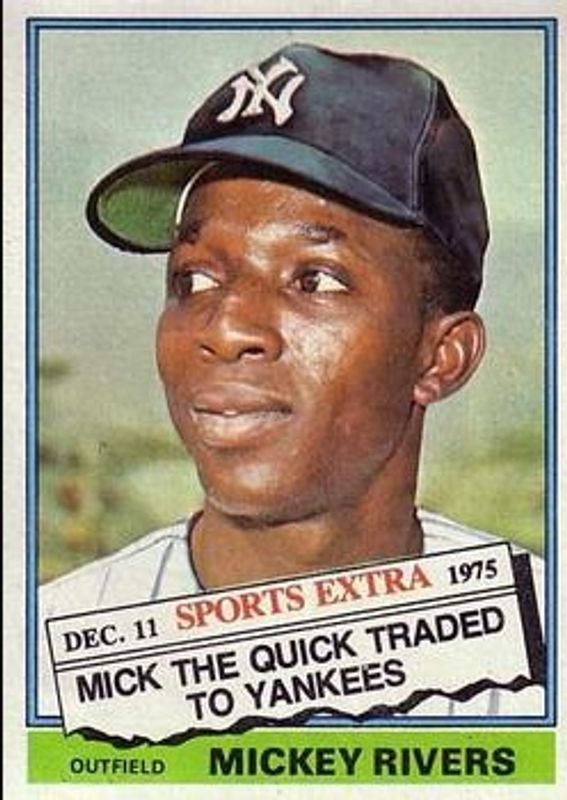 The Mickey Rivers 1976 Topps #85T Traded card is 1 of 2 Mickey Rivers' card variations in the 1976 Topps set being tracked by Sports Card Investor, including Base.