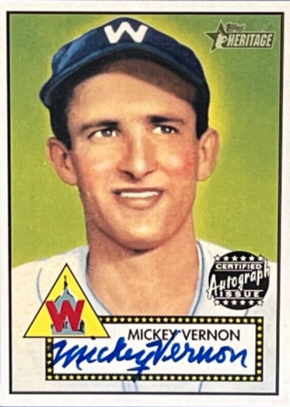 This card is 1 of 2 Mickey Vernon's card variations in the 2001 Topps Heritage set being tracked by Sports Card Investor, including Real One Autographs - Red Ink /52.