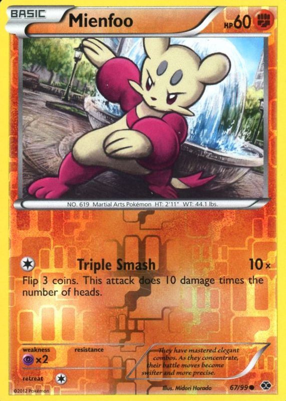 This card is 1 of 2 Mienfoo's card variations in the 2012 Black & White: Next Destinies set being tracked by Sports Card Investor, including Base.