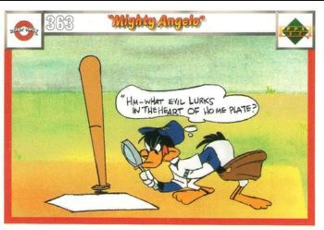 The Mighty Angelo 1990 Upper Deck Comic Ball #363-/-378 Base card is 1 of 18 Mighty Angelo's card variations in the 1990 Upper Deck Comic Ball set being tracked by Sports Card Investor, including #361-/-376 Base, #362-/-377 Base, #364-/-373 Base, #365-/-374 Base, and #366-/-375 Base.