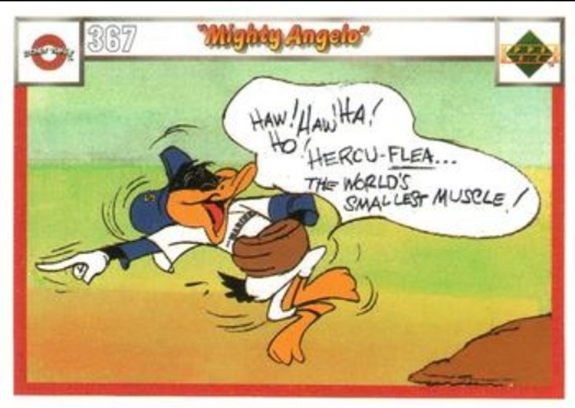 The Mighty Angelo 1990 Upper Deck Comic Ball #367-/-370 Base card is 1 of 18 Mighty Angelo's card variations in the 1990 Upper Deck Comic Ball set being tracked by Sports Card Investor, including #361-/-376 Base, #362-/-377 Base, #363-/-378 Base, #364-/-373 Base, and #365-/-374 Base.