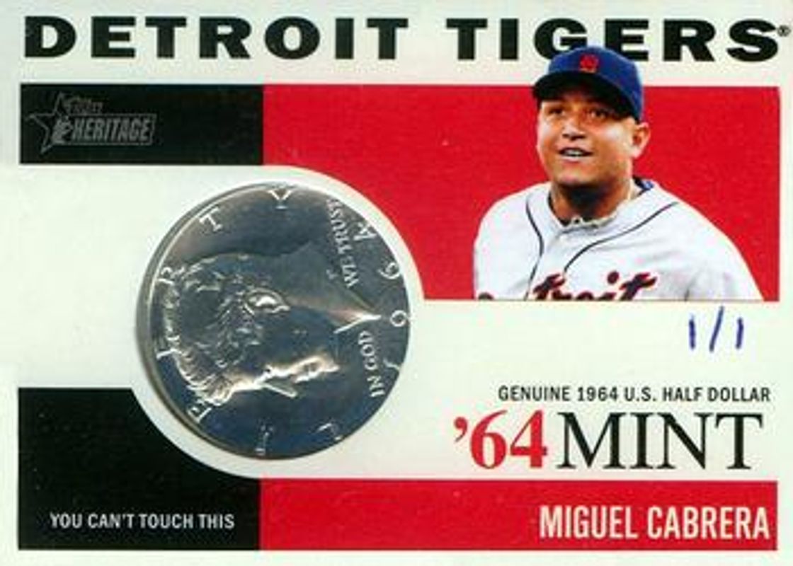Miguel Cabrera 2013 Topps Heritage #64M-MCA 1964 Mint - JFK Silver Half Dollar /1 RAW Price Guide