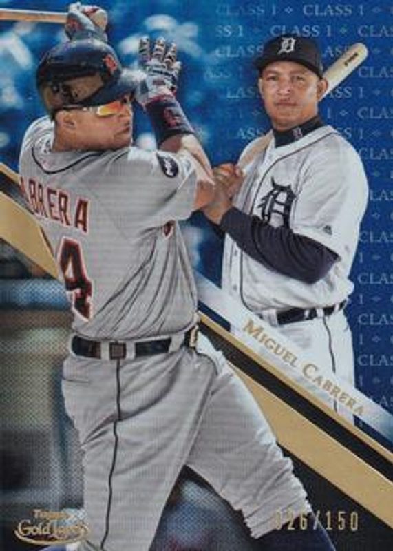 The Miguel Cabrera 2019 Topps Gold Label #24 Class 1 Blue /150 card is 1 of 22 Miguel Cabrera's card variations in the 2019 Topps Gold Label set being tracked by Sports Card Investor, including Base, Class 2, Class 3, Class 1 Black, and Class 2 Black.