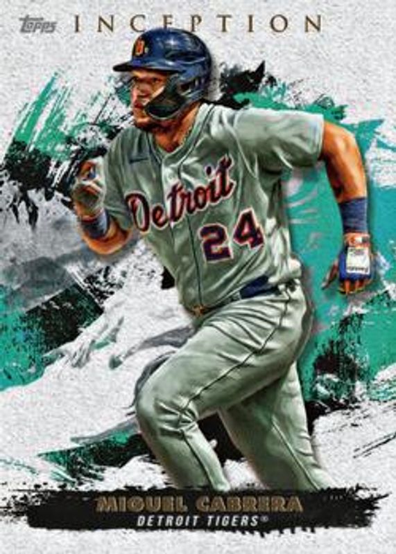 The Miguel Cabrera 2021 Topps Inception #89 Base card is 1 of 17 Miguel Cabrera's card variations in the 2021 Topps Inception set being tracked by Sports Card Investor, including Green, Purple /150, Magenta /99, Red /75, and Orange /50.