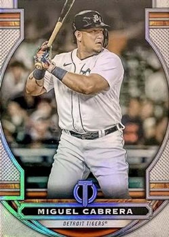 The Miguel Cabrera 2023 Topps Tribute #71 Base card is 1 of 42 Miguel Cabrera's card variations in the 2023 Topps Tribute set being tracked by Sports Card Investor, including Green /99, Gold /75, Purple /50, Orange /25, and Red /10.