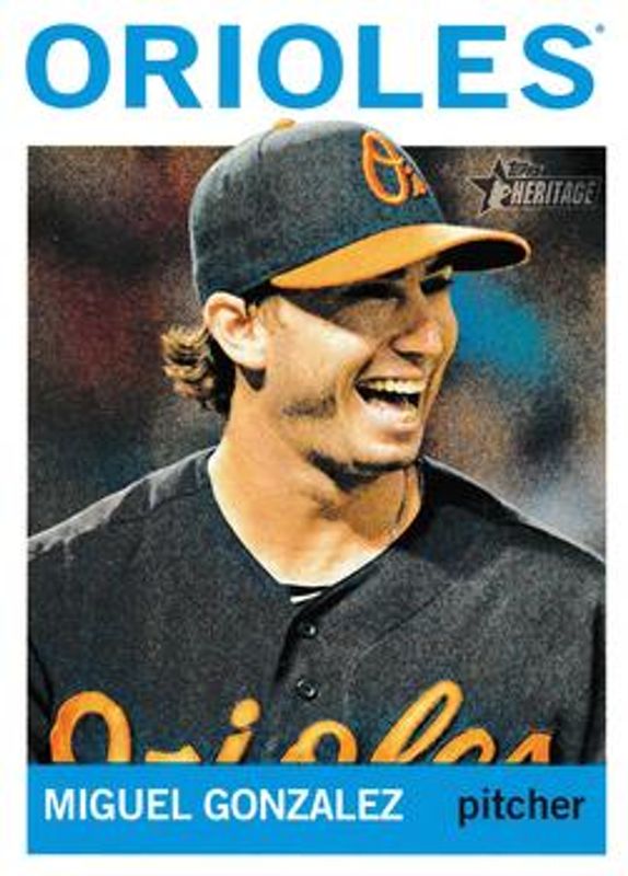 The Miguel Gonzalez 2013 Topps Heritage #348 Base Rookie card is 1 of 2 Miguel Gonzalez's card variations in the 2013 Topps Heritage set being tracked by Sports Card Investor, including Venezuelan.