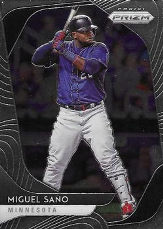 The Miguel Sano 2020 Prizm #109 Base card is 1 of 37 Miguel Sano's card variations in the 2020 Prizm set being tracked by Sports Card Investor, including Blue, Carolina Blue, Cosmic Haze, Green, and Pink.