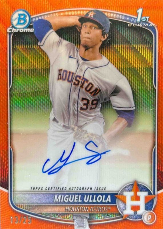 Auctions Ending Soon for Miguel Ullola 2025 Bowman Chrome #CPA-MU Prospect Auto - Orange Wave Refractor /25 (1st) RAW