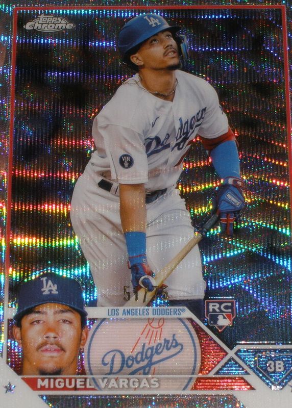 This card is 1 of 46 Miguel Vargas' card variations in the 2023 Topps Chrome set being tracked by Sports Card Investor, including Base, Negative Refractor, Pink Refractor, Prism Refractor, and Refractor.