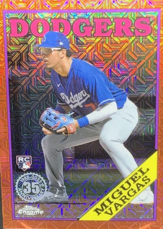 Best Prices Available For Sale of Miguel Vargas 2023 Topps Silver Pack #T88C-48 1988 Chrome Promo - Orange Refractor (Series 1) /25