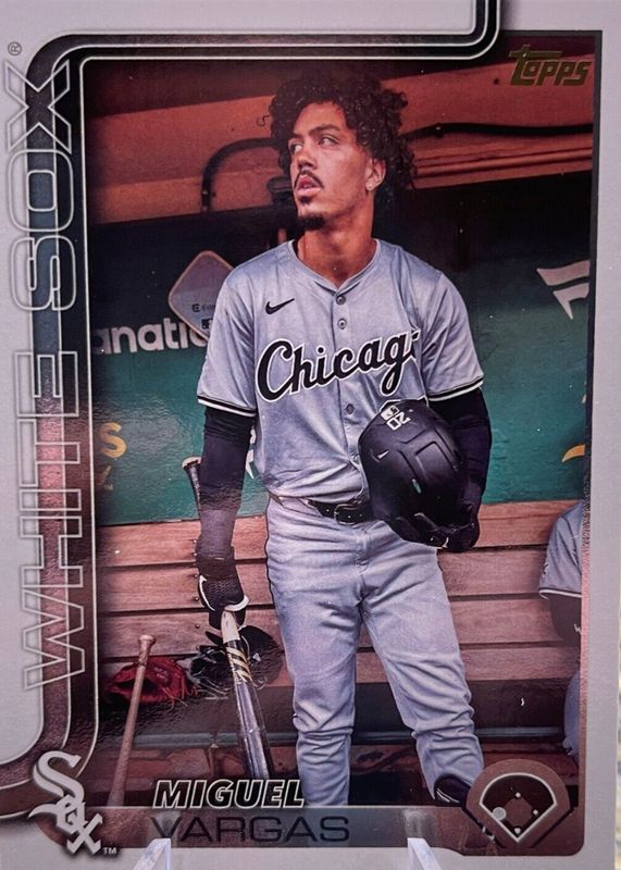 This card is 1 of 63 Miguel Vargas' card variations in the 2025 Topps set being tracked by Sports Card Investor, including Base, Aqua Holo Foil, Diamante Foil, Holo Foil, and Pink Diamante Foil.