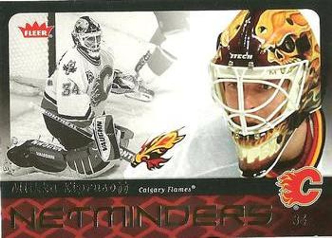 The Miikka Kiprusoff 2006 Fleer #N5 Netminders card is 1 of 5 Miikka Kiprusoff's card variations in the 2006 Fleer set being tracked by Sports Card Investor, including Fabricology, Hockey Headliners, Oversized, and Signing Day.
