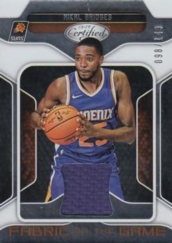 The Mikal Bridges 2018 Certified #FG-MIB Fabric of the Game Rookies /149 card is 1 of 37 Mikal Bridges' card variations in the 2018 Certified set being tracked by Sports Card Investor, including Base, 2018 Graffiti, Certified Future, Certified Potential Autographs, and Mirror.