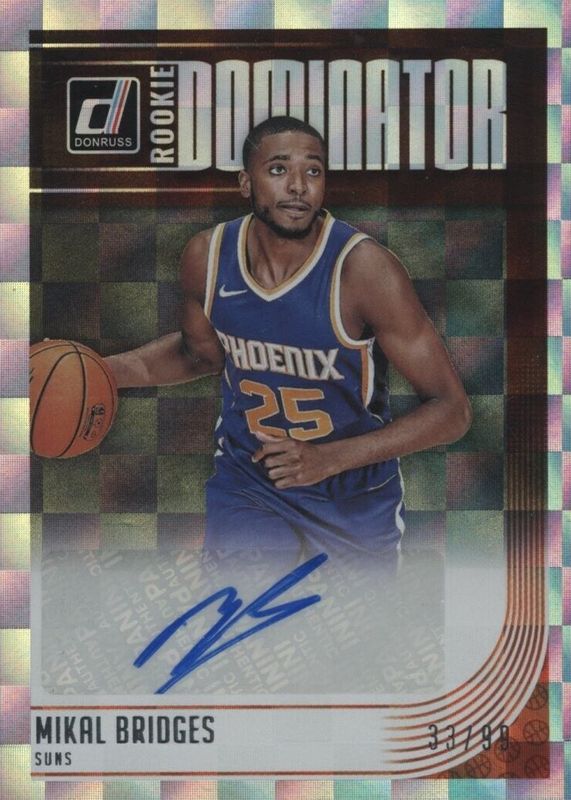 The Mikal Bridges 2018 Donruss #RD-MKB Rookie Dominator Signatures /99 card in Raw condition has not changed in price in the last 30 days.