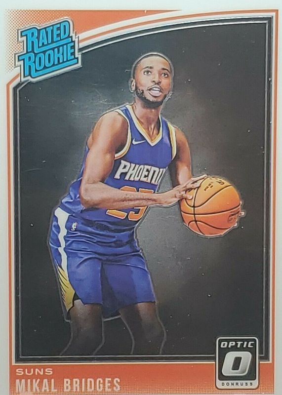 The Mikal Bridges 2018 Optic #200 Base Rookie card in Raw condition has moved down -$0.66 (-40.0%) in the last 30 days and was last sold for $0.99 .
