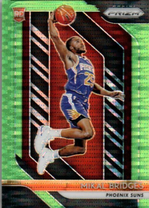 The Mikal Bridges 2018 Prizm #289 Green Pulsar /25 Rookie card in Raw condition has not changed in price in the last 30 days and was last sold for $211.38 .
