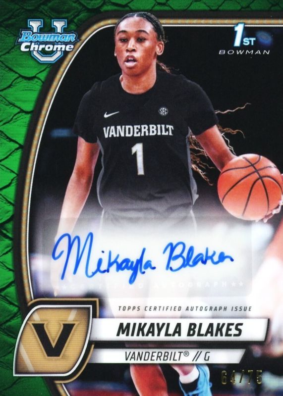 2024 BOWMAN CHROME UNIVERSITY MIKAYLA BLAKES #55 GREEN REPTILIAN AUTO #/75 SP