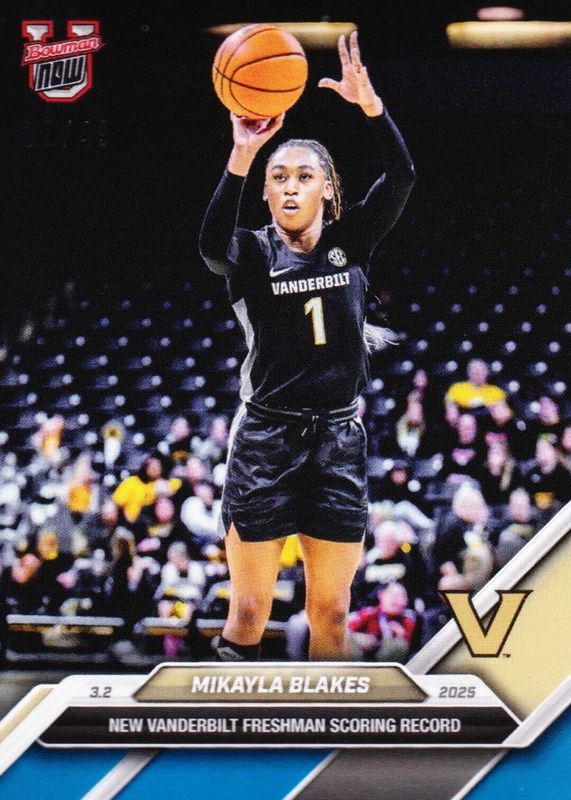 Mikayla Blakes Vanderbilt Freshman Score Record 2024-25 Bowman U Now 79 BLUE /49