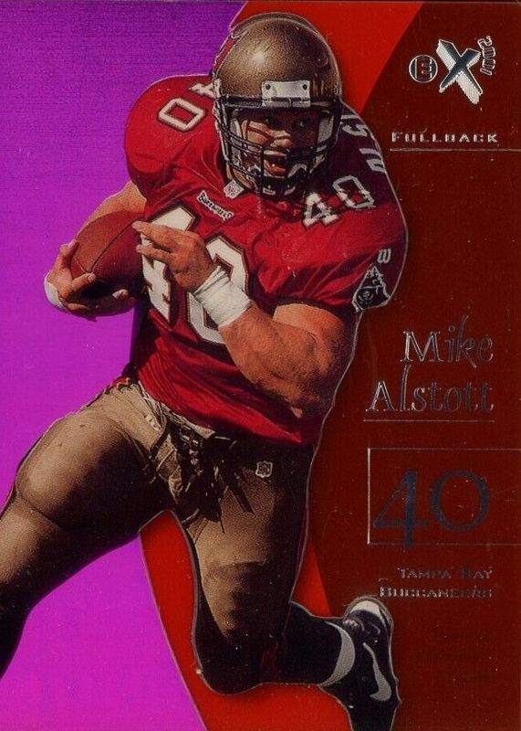 This card is 1 of 2 Mike Alstott's card variations in the 1998 Skybox E-X2001 set being tracked by Sports Card Investor, including Essential Credentials Now (/17).