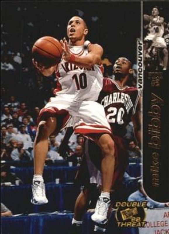 The Mike Bibby 1998 Press Pass Double Threat #2 Base Rookie card is 1 of 9 Mike Bibby's card variations in the 1998 Press Pass Double Threat set being tracked by Sports Card Investor, including #2 Alley Oop, #2 Torquers, #J1B Jackpot, #RT-2 Retros, and #RT-36 Retros.