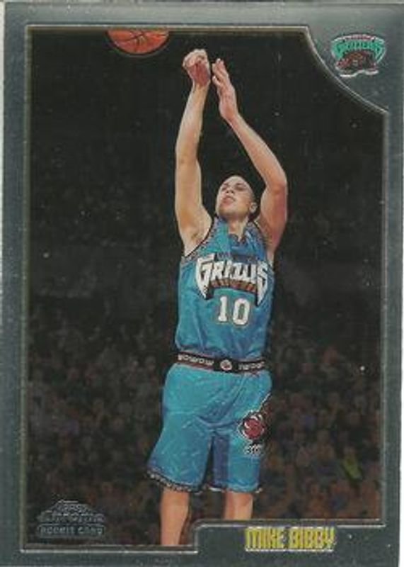 The Mike Bibby 1998 Topps Chrome #196 Base Rookie card is 1 of 3 Mike Bibby's card variations in the 1998 Topps Chrome set being tracked by Sports Card Investor, including Refractor, and Champion Spirit.