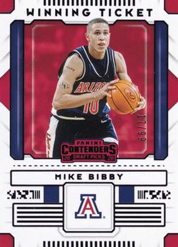 The Mike Bibby 2020 Contenders Draft Picks #23 Winning Tickets - Purple /99 card is 1 of 7 Mike Bibby's card variations in the 2020 Contenders Draft Picks set being tracked by Sports Card Investor, including Winning Tickets, Winning Tickets - Green, Winning Tickets - Red, Winning Tickets - Blue /99, and Winning Tickets - Cracked Ice /23.