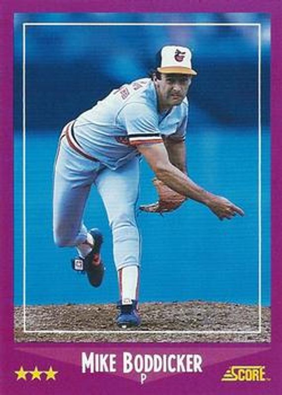 The Mike Boddicker 1988 Score #67 Base card is 1 of 2 Mike Boddicker's card variations in the 1988 Score set being tracked by Sports Card Investor, including Glossy.