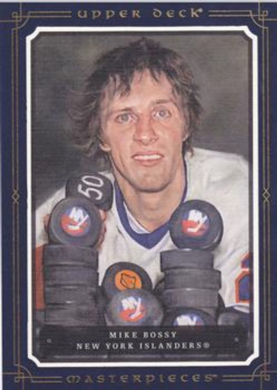The Mike Bossy 2008 Upper Deck Masterpieces #XL-MB 5 x 7 card is 1 of 13 Mike Bossy's card variations in the 2008 Upper Deck Masterpieces set being tracked by Sports Card Investor, including Base, Brown, Green /99, Blue /50, and Red /25.