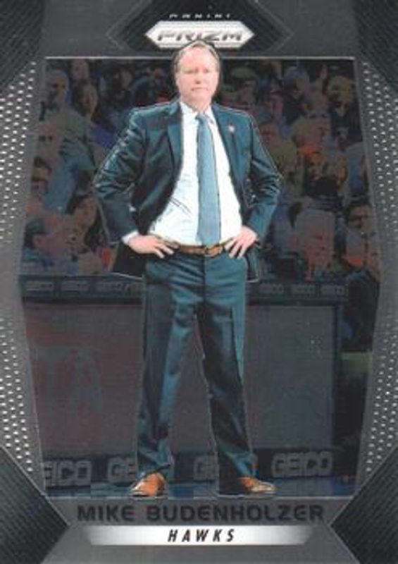 The Mike Budenholzer 2017 Prizm #110 Base card is 1 of 26 Mike Budenholzer's card variations in the 2017 Prizm set being tracked by Sports Card Investor, including Fast Break, Green, Hyper, Red White Blue, and Ruby Wave.