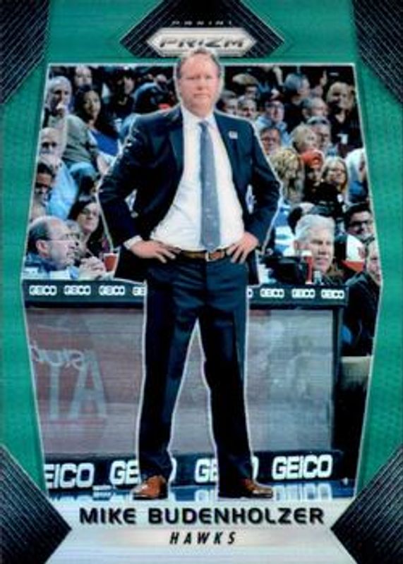 The Mike Budenholzer 2017 Prizm #110 Green card is 1 of 26 Mike Budenholzer's card variations in the 2017 Prizm set being tracked by Sports Card Investor, including Base, Fast Break, Hyper, Red White Blue, and Ruby Wave.