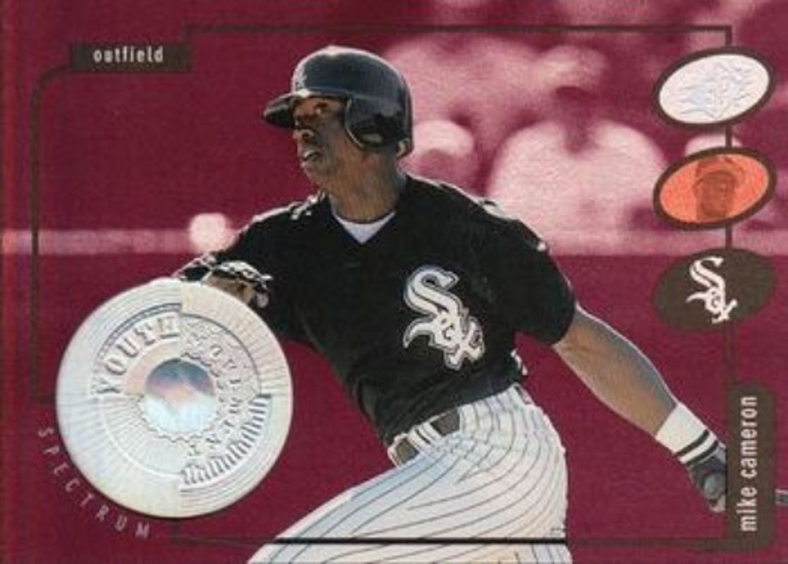 The Mike Cameron 1998 SPx Finite #3 Spectrum /2250 card is 1 of 3 Mike Cameron's card variations in the 1998 SPx Finite set being tracked by Sports Card Investor, including Base /9000, and Radiance /4500.
