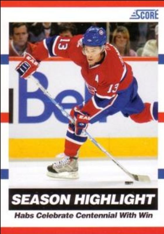 The Mike Cammalleri 2010 Score #10 Base card is 1 of 11 Mike Cammalleri's card variations in the 2010 Score set being tracked by Sports Card Investor, including #262 Base, #9 Base, #10 20th Anniversary, #262 20th Anniversary, and #262 French Back.