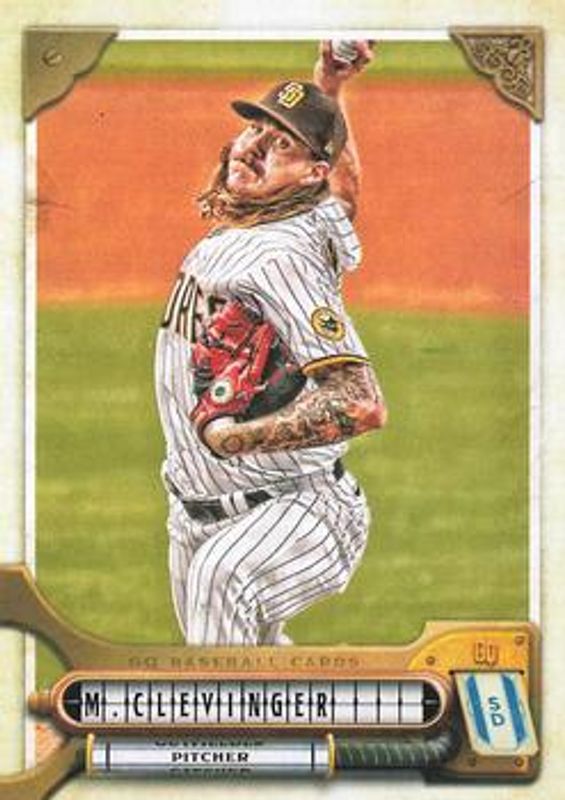 The Mike Clevinger 2022 Topps Gypsy Queen #96 Base card is 1 of 14 Mike Clevinger's card variations in the 2022 Topps Gypsy Queen set being tracked by Sports Card Investor, including Green, Missing Black Plate, Missing Nameplate, Team Logo Swap, and Burnt Umber /399.