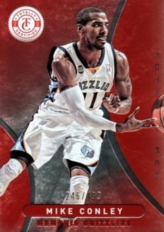 The Mike Conley 2012 Totally Certified #246 Totally Red /499 card is 1 of 25 Mike Conley's card variations in the 2012 Totally Certified set being tracked by Sports Card Investor, including Base, Totally Blue /299, Totally Gold /25, Totally Green /5, and Printing Plate Black /1.