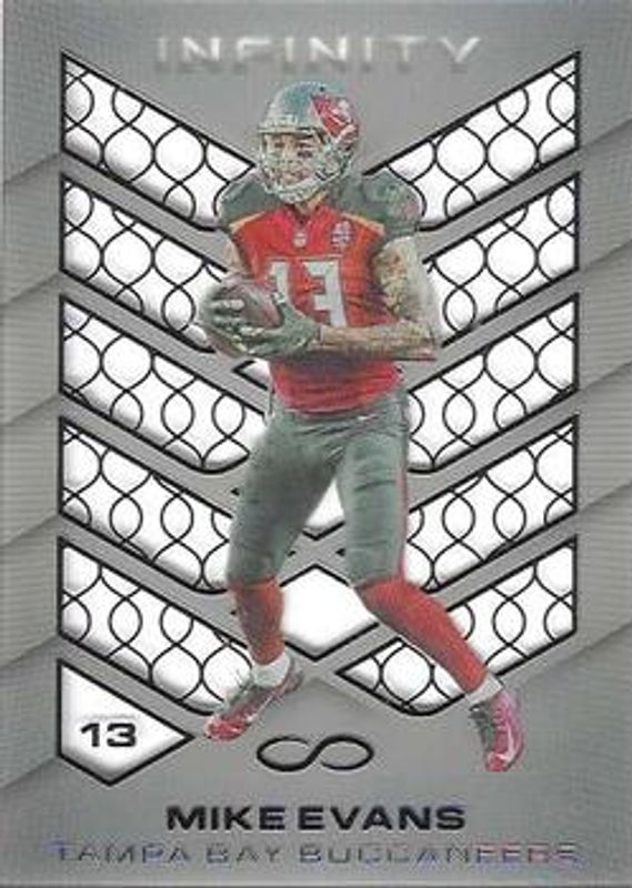 The Mike Evans 2016 Infinity #80 Base card is 1 of 7 Mike Evans' card variations in the 2016 Infinity set being tracked by Sports Card Investor, including Common /88, Unique /8, Rare /1, Infinite Materials /88, and Infinite Materials - Prime /8.