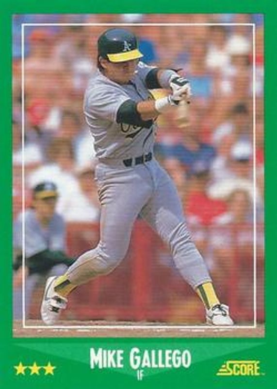 The Mike Gallego 1988 Score #428 Base card is 1 of 2 Mike Gallego's card variations in the 1988 Score set being tracked by Sports Card Investor, including Glossy.
