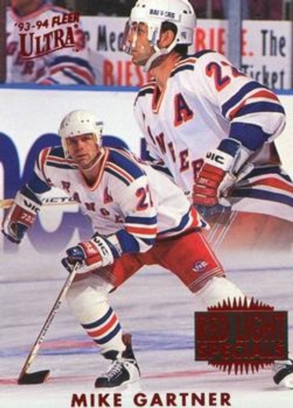 Mike Gartner's Hockey cards are available in at least 107 sets. Mike Gartner's biggest 7-day price movers are 1993 Fleer Ultra #3 Red Light Specials, 1993 Fleer Ultra #4 Speed Merchants, and 1994 Fleer Ultra #3 Red Light Specials.