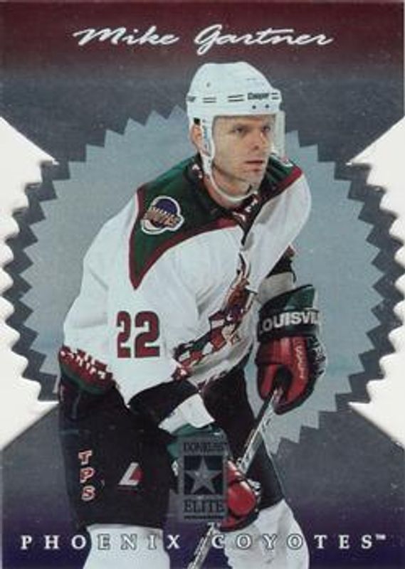 The Mike Gartner 1996 Donruss Elite #123 Die-Cut card is 1 of 2 Mike Gartner's card variations in the 1996 Donruss Elite set being tracked by Sports Card Investor, including Base.