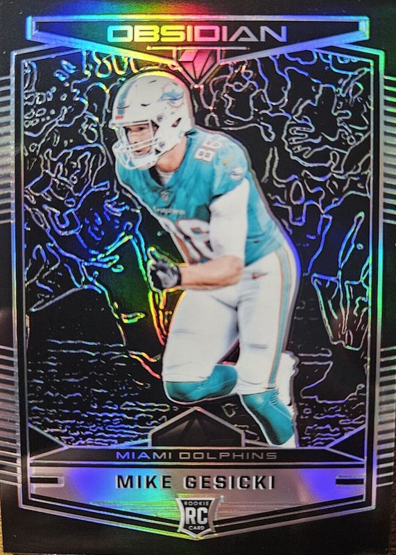 The Mike Gesicki 2018 Obsidian #130 Base /100 Rookie card in Raw condition has not changed in price in the last 30 days and was last sold for $1.25 .