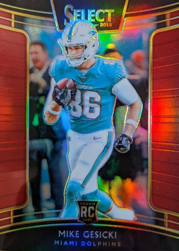 This card is 1 of 14 Mike Gesicki's card variations in the 2018 Select set being tracked by Sports Card Investor, including Concourse, Concourse Silver, Concourse Tri-Color /199, Concourse Blue /175, and Concourse White /75.