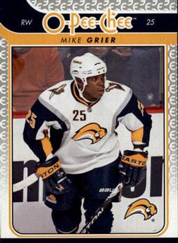 The Mike Grier 2009 O-Pee-Chee #712 Base card is 1 of 7 Mike Grier's card variations in the 2009 O-Pee-Chee set being tracked by Sports Card Investor, including #300 Base, #300 Rainbow, #712 Rainbow, #300 Retro, and #300 Retro Blank Back.